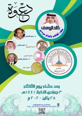 الباحة – برعاية كريمة من صاحب السمو الملكي الأمير الدكتورحسام بن سعود بن عبد العزيز أمير منطقة الباحة وبحضور وكيل الأمارة المكلف الأستاذ أحمد السياري يحتفي نادي الباحة الأدبي الثقافي بالأديب والقاص والروائي الأستاذ خالد بن أحمد اليوسف وذلك بعد مغرب يوم الاثنين 2 / 6 / 1441 هـ الموافق 27 / 1 / 2020 م حيث سيقام حفل تكريم كبير بعنوان ” خالد اليوسف ذاكرة الوطن الثقافية ” يشهده نخبة من مثقفي المملكة والوطن العربي وسيشمل الحفل عرضا مرئيا عن المحتفى به تتخلله شهادات بعض المثقفين وكلمات وقصايد شعرية ثم لقاء مفتوح معه وحفل توقيع كتابه الصادر عن النادي حديثا بعنوان سرديات خالد اليوسف