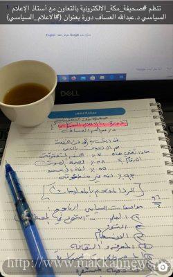 نظمت صحيفة مكة الالكترونية بالتعاون مع أستاذ الإعلام السياسي د.عبدالله العساف دورة جديدة بعنوان “التحليل السياسي” ضمن مجموعة من البرامج والفعاليات التي تنظمها الصحيفة انطلاقًا من دورها التوعوي ومسؤوليتها الاجتماعية.