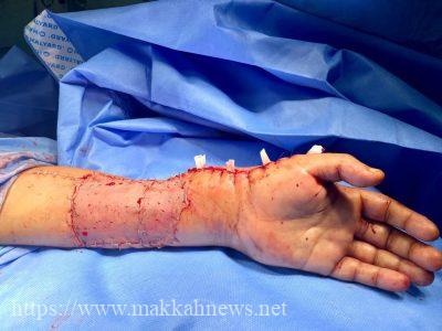 أنقذ الفريق الجراحي المتخصّص بمستشفى الملك عبد العزيز بجدة يد مقيم في العقد الرابع من العمر من البتر، وذلك بعد أن حضر المصاب إلى الطوارئ بسبب حادث مروري تعرض له وقد تسبب الحادث في فقد شديد من انسجه اليد اليسرى وعلى الفور تم التأكد من سلامته من الكسور والاصابات وعمل الأشعة اللازمة ونقله بعدها على الفور لغرفة العمليات واجراء عمليه جراحيه ناجحة لترميم اليد وذلك باستخدام نقل وزراعه شريحة جلديه من الساعد الأيسر بجراحه ميكروسكوبية