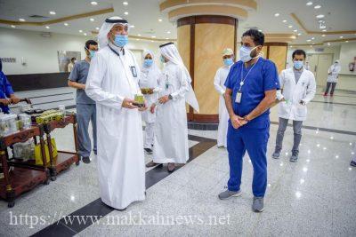 قام مدير مستشفى الملك عبدالعزيز بمكة المكرمة الدكتور عاهد بن علي عقيل،، بجولة على الممارسين الصحيين داخل أقسامهم بالمستشفى ؛ وذلك من أجل تقديم الشكر والثناء لأبطال الصحة ، وما قدموه من مجهودات جبارة من أجل سلامة المرضى ، وتسليمهم الهدايا الرمزية بهذه المناسبة وذلك حسب التدابير الاحترازية والوقائية التي اتخذها المستشفى.
