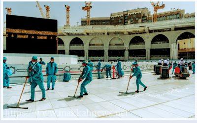 وكثفت رئاسة شؤون الحرمين عمليات تعقيم ثوب وسلم الكعبة المشرفة وصحن المطاف، وسبق ذلك استحداث إدارة للوقاية البيئية ومكافحة الأوبئة لسلامة قاصدي المسجد الحرام.