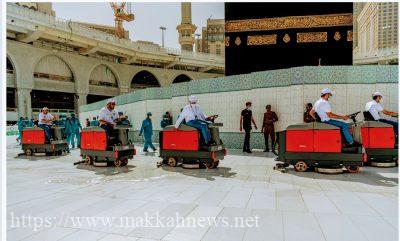 ومن هذا المنطلق قامت الرئاسة العامة بتعقيم المسجد الحرام بـ (1800) لتر من المعقمات الصديقة للبيئة يومياً، حيث تم دعم إدارة التطهير والسجاد بالمسجد الحرام بعدد (450) عاملا؛ ضمن عدة إجراءات وقائية واحترازية قامت بها الرئاسة العامة لمنع وصول فيروس كورونا الجديد (كوفيد-19) إلى المسجد الحرام وساحاته.