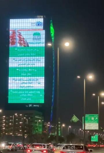ضمن الاحتفالات بذكرى اليوم الوطني الـ90 تحت شعار (همة حتى القمة) أتاحت أمانة محافظة جدة نشر رسائل السكان من مواطنين ومقيمين على برج الشاشة الواقع على طريق الملك أحد أكبر شاشات الـ LED الإعلانية في العالم وذلك لمشاركتهم التعبير عن فرحتهم بيوم الوطن.