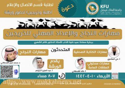 قسم الإعلام بجامعة الملك فيصل يقدم ورشة عمل لطلابه وخريجيه