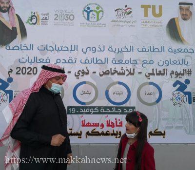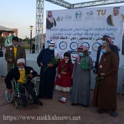 الطائف : أُقيم هذا اليوم الخميس بحديقة منتزه الردف فعاليات اليوم العالمي للاشخاص ذوي الإعاقة بحضور رئيس مجلس إدارة جمعية الطائف الخيرية لذوي الإحتياجات الخاصة الدكتور سعيد الزهراني والدكتور خالد عسيري وبحضور المشاركين من ذوي الإحتياجات الخاصة بنين وبنات .