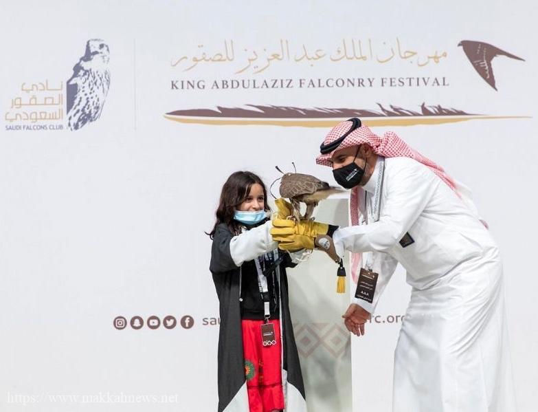 نادي الصقور السعودي يهدي طفلة صقراً ويشهد مشاركة طفلٍ آخرَ في مسابقة الملواح
