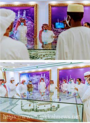 حيث اطلع الوفد، على مقتنيات معرض عمارة الحرمين الشريفين، خلال زيارتهم لمجمع الملك عبدالعزيز لكسوة الكعبة المشرفة، ومعرض عمارة الحرمين الشريفين.
