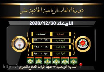 مع اقتراب ختام دورة الالعاب الرياضية الحادية عشرة والمقامة على منشأت المدينة الرياضية بمعهد قوات الدفاع الجوي بجدة، انكشفت معالم المنافسة في لعبتي كرة القدم وكرة اليد من خلال نتائج المباريات التي جأت كالتالي :