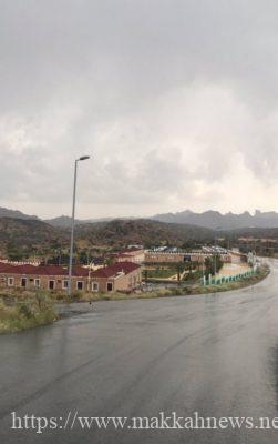 فيما سالت على إثرها الكثير من الأودية المعروفة، ولا تزال السماء ملبدة بالغيوم وهطول الأمطار مستمرًا.