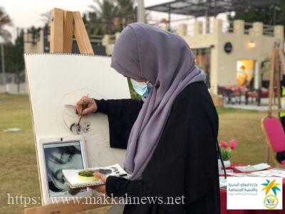وأثناء الجولة التقينا بالفنانة التشكيلية المبدعة ساره الهداف وقالت الفعالية جميله وكانت حلوة من كل الجوانب ‘وإنني استمتعت بالمشاركة وهي الرسم المباشر وعرض بعض من أعمالي وتعتبر المشاركة هي الأولى لي مع همسات الذي يملك سمعة وصدى على مستوى المنطقة والذي جعلني أخوض التجربة معه وكانت موفقة بإمتياز وأنها لن تكون الأخيرة فالفريق جدا يملك روح التعاون من إدارة وأعضاء وفنانات فشكري لهم جميعا على هذا العطاء