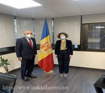 وعبر السفير القين خلال اللقاء الذي جرى بمقر وزارة الخارجية في إمارة أندورا، عن تطلعه لتوطيد العلاقات بين البلدين والدفع بها إلى آفاق أرحب.