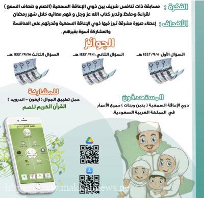دشَّنت الجمعية الدعوية للصم مسابقة معاني القرآن الكريم للصم وضعاف السمع والمترجمة بلغة الإشارة (اللغةالطبيعية ) ، وتعد هذه المسابقة الأولى من نوعها على مستوى المملكة العربية السعودية والعالم العربي وحصلت علىفتوى من إدارة البحوث العلمية والإفتاء بالمملكة ، حول تعليم الصم معاني القرآن الكريم .