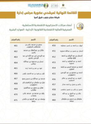 اعلنت وزارة الحج والعمرة اليوم، عن القائمة النهائية لمرشحي عضوية مجلس إدارة شركة حجاج جنوب شرق آسيا .