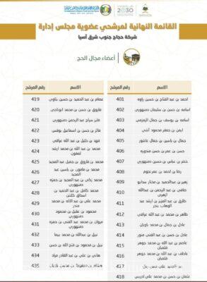 حيث شملت القائمة الخاصة بمجال اعضاء مرشحي مجال الحج عدد 35 مرشحا ،اضافة 22 مرشحا لبقية المجالات،وهي :-الاستراتيجية (الاستثمارية والاقتصادية)وكذلك المصرفية(المالية والاقتصادية) اضافة الى القانونية والادارية والموارد البشرية.