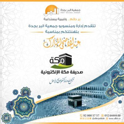 جدة : قدمت إدارة ومنسوبي جمعية البر بمحافظة جدة التهنئة لأسرة صحيفة مكة الإلكترونية بمناسبة عيد الاضحي المبارك لعام ١٤٤٢ .