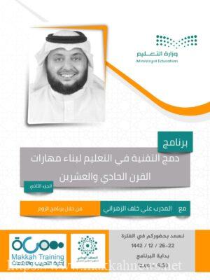 من جانبه اوضح مقدم دورة (دمج التقنية بالتعليم لبناء مهارات القرن الواحد والعشرين).الاستاذ علي بن خلف الزهراني،اهمية مثل هذه البرامج في تطوير مهارات المتدربين والمتدربات، لافتا انها تضمنت عددا من الاهداف ومنها:-