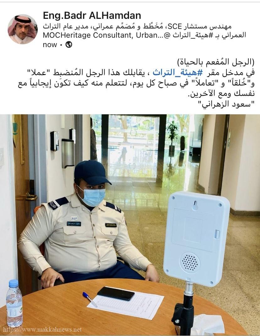 المهندس بدر الحمدان، مدير عام إدارة التراث العمراني، كفانا عناء الإجابة على هذا السؤال الهام، فهو يرى بخبرته أولًا: أن الشغف يحتاج لقوة ملهمة وحافز داخلي ولا يستمدان إلا من طاقة الإيمان لدى الفرد وثانياً: أنه ابدع في توظيف هذه المعلومات بشكل واقعي!، ففي تغريده له عبر حسابه الشخصي في موقع لينكدن، كتب الحمدان : “(الرجل المُفعم بالحياة) في مدخل مقر #هيئة_التراث ، يقابلك هذا الرجل المُنضبِط “عملا” و”خُلقاً” و “تعاملاً” في صباح كل يوم، لتتعلم منه كيف تكون إيجابياً مع نفسك ومع الآخرين وفي نهاية التغريدة كشف الحمدان عن إسم الشخص الملهم وهو أحد الموظفين واسمه “سعود الزهراني”.