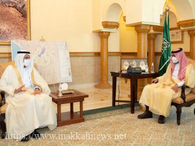 جدة : استقبل أمير منطقة مكة المكرمة بالنيابة صاحب السمو الملكي الأمير بدر بن سلطان في مقر الإمارة بجدة، معالي وزير الحج والعمرة الدكتور توفيق الربيعة