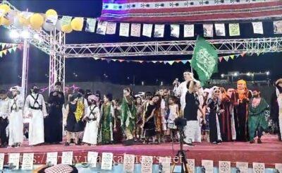 وختاما تم توزيع الهدايا على الحضور والمشاركين وشهد المهرجان حضور غفير من الاهالي وشاركوا في الحفل ابتهاج بيوم التأسيس .