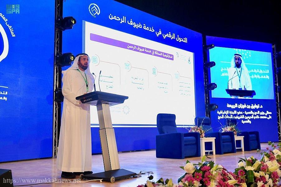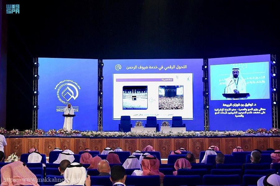 واستعرض معاليه, خلال الجلسة الرئيسة بعنوان “جهود وزارة الحج والعمرة في التحوّل الرقمي لخدمة ضيوف الرحمن” ضمن أعمال الملتقى العلمي الـ 21 للحج والعمرة والزيارة الذي تنظمه جامعة أم القرى ممثلة بمعهد خادم الحرمين الشريفين للحج والعمرة والزيارة إستراتيجية تسهيل الوصول إلى الحرمين الشريفين, وتقديم خدمات ذات جودة عالية, وإثراء التجربة الدينية والثقافية للحاج والمعتمر, وتحقيق الاستدامة في مجال الابتكار وتطوير الخدمات الرقمية في مجال الحج والعمرة, منوهاً بالجهود الكبيرة التي عُملت في هذا المجال؛ تحقيقاً لمستهدفات رؤية المملكة 2030 التي تشمل زيادة أعداد المعتمرين, وإثراء التجربة وعكس التطوّر الذي نراه في المملكة من خلال تجربة ثرية وأداء المناسك بكل طمأنينة.