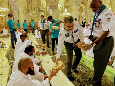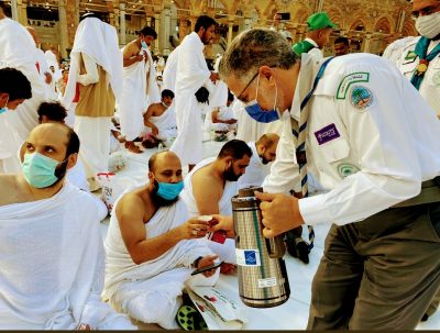 ضمن برامج وخطط قسم النشاط الكشفي بادارة نشاط الطلاب، بادارة تعليم مكة ، وبالتعاون مع الرئاسة العامة لشؤون المسجد الحرام والمسجد النبوي ، قام افراد وقادة الكشافة مغرب اليوم الجمعة 1443/9/7 بتوزيع 5250 عبوة تمر ضمن اعمال برنامج (إفطار صائم ) في صحن المطاف والمسعى؛ حيث ساهمت في توزيعها كشافة تعليم مكة، بحضور مدير ادارة نشاط الطلاب ، نبيل بكر طيب ،بالإضافة إلى المشاركة في تنظيم وإدارة الحشود والعربات الكهربائية وخدمة الزائرين والمعتمرين لبيت الله الحرام .