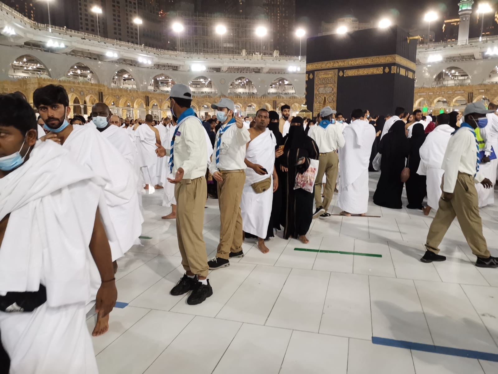 حيث تواجد افراد عناصر كشافة تعليم مكة، اليوم بالمسجد الحرام من بعد صلاة العصر   تزامنا مع توافد  حشود  المصلين والمعتنرين لأداء صلاة المغرب وصلاة العشاء وصلاة التراويح،  في المسجد الحرام ،حيث تم تنظيم وتفويج حشود المعتمرين في صحن المطاف  ، وباقي المصلين في التوسعات وأدوارها والساحات الخارجية لها , وسط منظومة متكاملة من الخدمات والإجراءات الوقائية والتنظيمية،التي ساهمت في إتمام المناسك بكل يسر وسهولة .