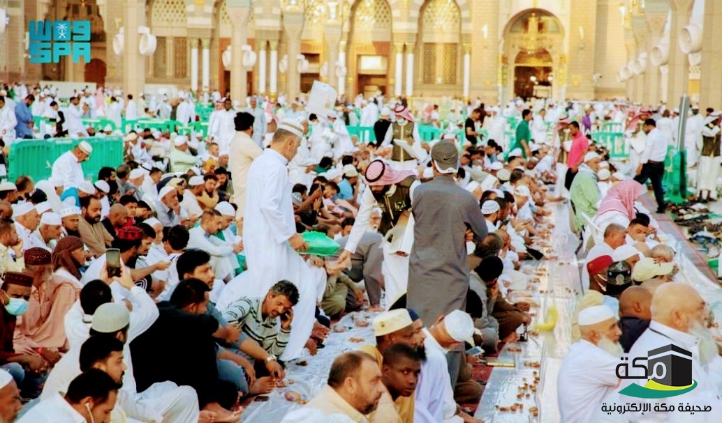 ويقوم بتوزيع وجبات الإفطار 3 آلاف متعهد تغذية وأكثر من 1500 متطوّع كرسوا جهودهم لزوار مسجد رسول الله -صلى الله عليه وسلم.