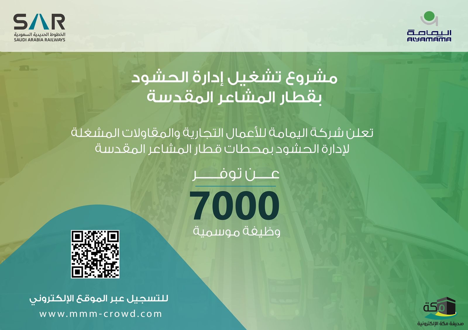 بدء التسجيل في الوظائف الموسمية لمشروع إدارة الحشود بـ #قطار_المشاعر_المقدسة