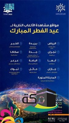 تعانق سماء المملكة في مساء أول أيام عيد الفطر مجموعة من الألعاب النارية التي تشكل إحدى فعاليات الهيئة العامة للترفيه في برنامجها لعيد هذا العام 2022، حيث تضيء الألعاب بوهجها وألوانها جميع مناطق المملكة، لتضاعف مستويات الفرح، وتهيئ لانطلاق بقية الفعاليات المتنوعة التي تصاحب سكان المملكة خلال أيام عيد الفطر.