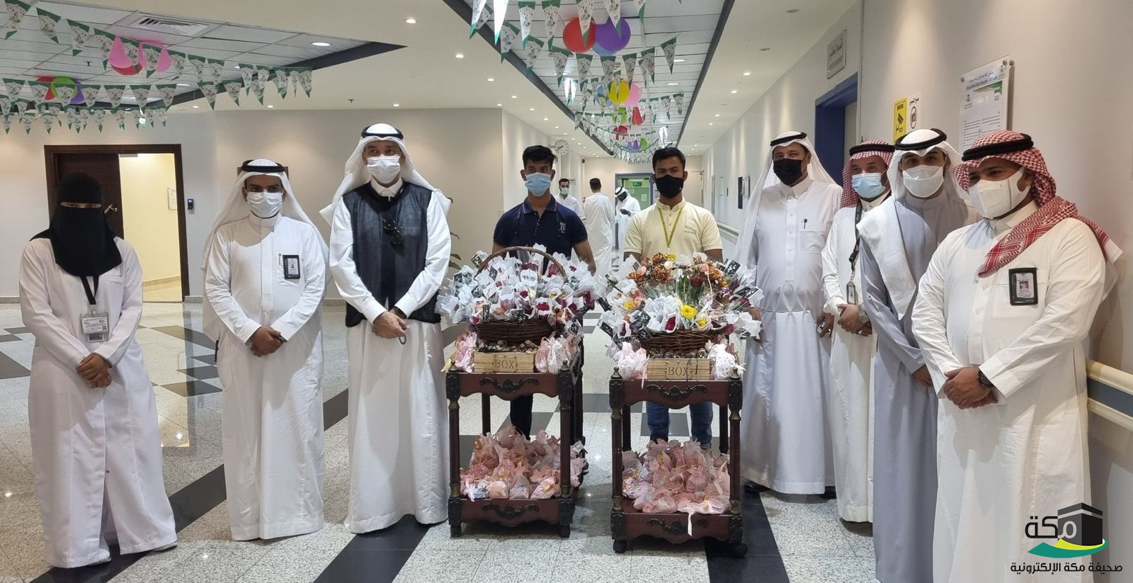 عايد المدير التنفيذي لمستشفى الملك عبدالعزيز بمكة المكرمة الدكتور عاهد بن علي عقيل يرافقه المدير التنفيذي للعمليات، مالك المطرفي، ومديرة الخدمات التمريضية ندى المولد ورئيس قسم الخدمة الاجتماعيه،حسن ابو الفرج وعدد من رؤساء الاقسام ، صباح اليوم الاثنين 1443/10/1 عددا من المرضى المنومين في الأقسام الداخلية والمتواجدين في قسم الطوارئ والموظفين المناوبين بمناسبة حلول عيد الفطر المبارك لهذا العام 1443 وقدما خلال زيارتهما لهم التهاني والتبريكات والهدايا والورود تعبيرا عن مشاعر الحب وأصدق الأمنيات في هذه المناسبة الدينية المباركة وتمنياتهما لهم بالشفاء العاجل.