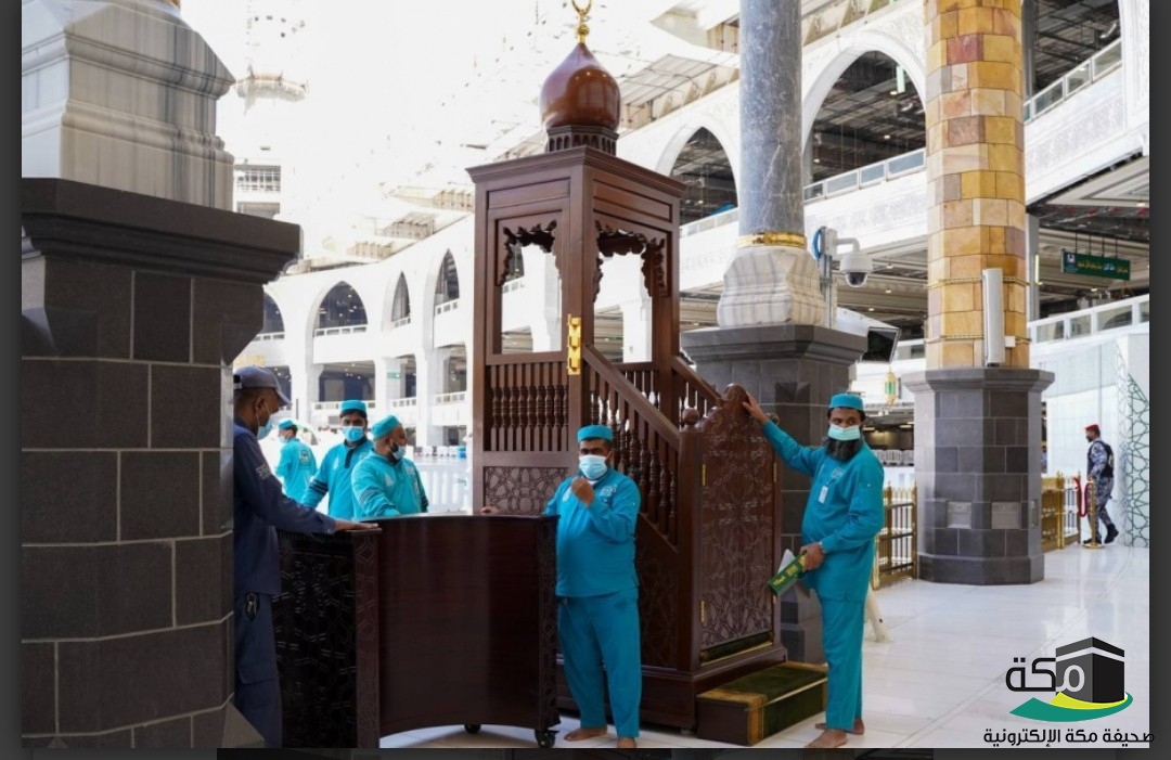 15 دقيقة لنقل منبر خطيب الجمعة بالمسجد الحرام إلى موقعه داخل صحن المطاف