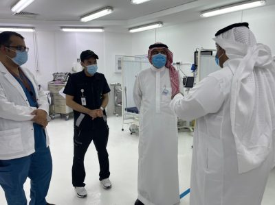 وتفقد الرئيس التنفيذي ، خلال الجولة كلا من مستشفى اجياد للطوارئ ، ومستشفى طوارئ الحرم، ومستشفى ، ومراكز طوارئ الحرم ،و افقه خلالها المدير التنفيذي لمستشفى أجياد ومستشفى طوارئ الحرم د. عبد الله الحارثي حيث وقف د. العمري على أقسام المستشفى المختلفة من العناية المركزة، ومنطقة الفرز البصري والاقسام الطبية والطبية المساعدة كما أطلع على جاهزية ٣ مراكز طوارئ الحرم المتواجدة داخل المسجد الحرام واطمأن على سير العمل فيها.