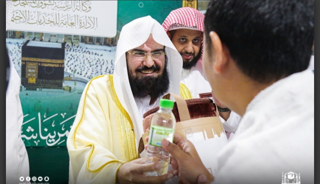 د.السديس يشارك في توزيع الهدايا على ضيوف الرحمن بحضور (الترجمة الفورية) بالمسجد الحرام