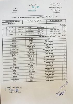 وأوضح الخميسي أن حركة النقل شملت ثلاثة موجهين من مدارسهم لمدارس أخرى حسب الحاجة والمصلحة التعليمية ورغباتهم .. سائلا الله التوفيق للجميع .