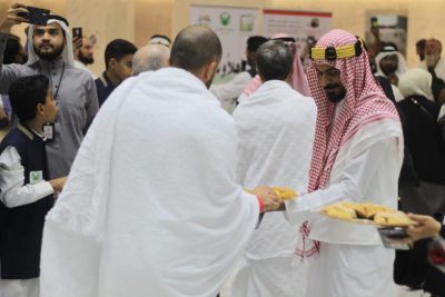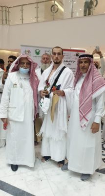 وجاء الاستقبال بأجواء احتفالية من خلال توزيع الورود ، والهدايا التذكارية ، وعبوات ماء زمزم ، وقطع من الحلاوة المكية البلدية مثل ( اللبنية واللدو والتمر والقهوة ) والاناشيد الترحيبية ، مقدمين التهنئة لهم بسلامة الوصول ، متمنيين لهم اقامة سعيدة بجوار بيت الله الحرام وآداء مناسكهم بيسر وسهولة.
