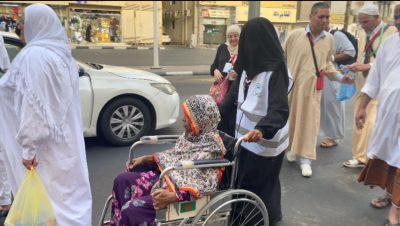 أما المسار الثاني فهو العمل مع قوة أمن الحرم المكي الشريف في إدارة الحشود والمساهمة في تفويج الحجاج للمطاف والخروج منه