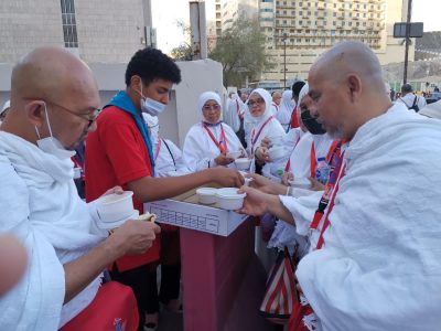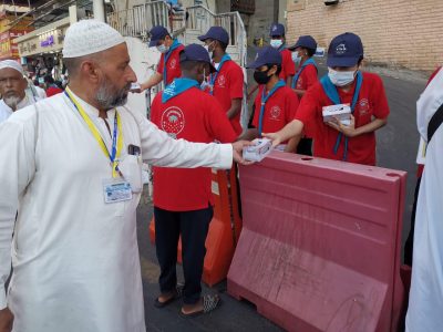 ويتكون فطور الحاج من وجبة جافة مكونة من أربعة أصناف مختلفة يقوم أفراد الكشافة بتوزيعها بعد صلاة الفجر للحجاج بعد خروجهم من المسجد الحرام .