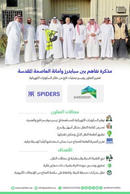 ‏برعاية كريمة من معالي أمين العاصمة المقدسة الاستاذ صالح بن علي التركي واشراف سعادة مساعد أمين العاصمة المقدسة للحج والعمرة المهندس خالد بن عبدالله سندي وتنسيق المهندس فهد حسني حريري أطلقت الادارة العامة للمشاعر المقدسة ممثلة في إدارة شؤون الحج والعمرة بالتعاون مع شركة (سبايدرز Spiders) مبادرة تسهيل تنقلات منسوبي الامانه المشاركين في مهمة حج ١٤٤٣هـ بالمشاعر  المقدسة ، وذلك بتوفير عدد من الاسكوترات الذكيه لمساعدة العاملين بمراكز الخدمات البلديه في تنقلاتهم بين مناطق الخدمة لاداء مهامهم بكل يسر وسهولة.