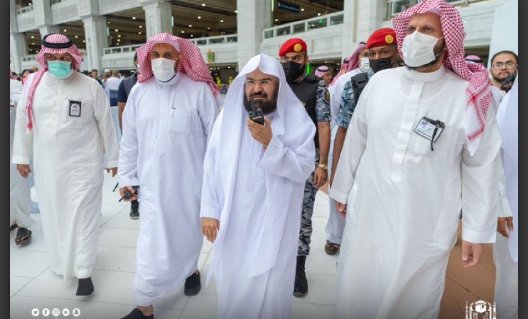 قام الرئيس العام لشؤون المسجد الحرام والمسجد النبوي الدكتور عبدالرحمن بن عبدالعزيز السديس، بجولة ميدانية بصحن المطاف للاطلاع على سير الأعمال وتوافر الخدمات وتكاملها، وذلك خلال جولته الميدانية بالمسجد الحرام رافقه خلالها مساعد الرئيس العام المكلف وكيل شؤون المسجد الحرام الدكتور سعد بن محمد المحيميد ،وعدد من القيادات بالرئاسة.