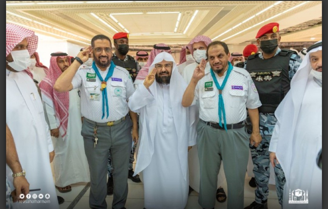 أثنى الرئيس العام لشؤون المسجد الحرام والمسجد النبوي، الدكتور عبدالرحمن بن عبدالعزيز السديس، على جهود فريق كشافة وزارة التعليم ومركز “بادر” للخدمات التطوعية بتعليم مكة ، بالمسجد الحرام، وذلك خلال جولة الدكتور السديس الميدانية بالمسجد الحرام، للوقف على سير الخدمات المقدمة لضيوف الرحمن.