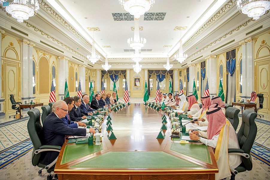 بدعوة كريمة من خادم الحرمين الشريفين الملك سلمان بن عبدالعزيز آل سعود، ملك المملكة العربية السعودية، قام الرئيس جوزيف بايدن رئيس الولايات المتحدة الأمريكية بزيارة رسمية إلى المملكة العربية السعودية في يومي 15 و 16 يوليو 2022م. بعد اللقاء الذي جمع خادم الحرمين الشريفين الملك سلمان بن عبدالعزيز آل سعود بفخامة الرئيس جو بايدن، عقد صاحب السمو الملكي الأمير محمد بن سلمان بن عبدالعزيز آل سعود، ولي العهد نائب رئيس مجلس الوزراء، اجتماعًا رسميًا مع فخامة الرئيس بايدن بحضور كبار المسؤولين من الجانبين. وقد استعرض القائدان على نحو مفصل الأولويات المشتركة التي من شأنها أن تسهم في تعزيزالشراكة بين المملكة العربية السعودية والولايات المتحدة الأمريكية.