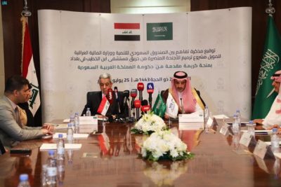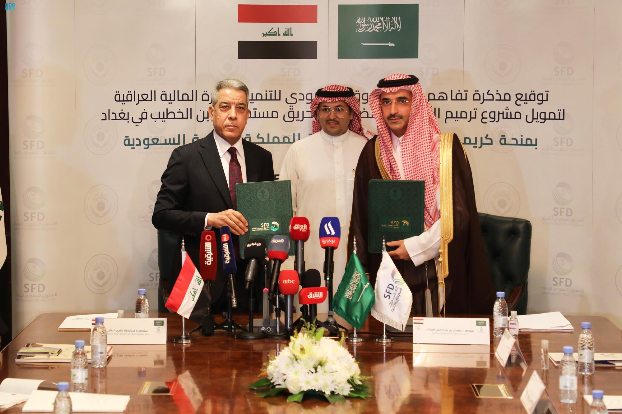يشار إلى أن المملكة العربية السعودية قد أعلنت خلال مؤتمر الكويت الدولي لإعادة إعمار العراق عن تخصيص مبلغ مليار ونصف دولار لتقديم قروض ميسّرة عبر الصندوق السعودي للتنمية من خلال تمويل المشروعات والبرامج الإنمائية في جمهورية العراق الشقيقة, وقد تم مسبقًا توقيع اتفاقيتين تنمويتين بقيمة تتجاوز (40) مليون دولار لتمويل مشروعين في كلٍ من قطاع الصحة ويتضمن مشروع إنشاء مستشفى الصقلاوية في محافظة الأنبار، وكذلك قطاع الزراعة ليشمل مشروع إنشاء صومعة غلال معدنية لخزن القمح في محافظة الديوانية، للإسهام في تطوير الخدمات الصحية الأساسية، وتحقيق الأمن الغذائي والاكتفاء الذاتي.