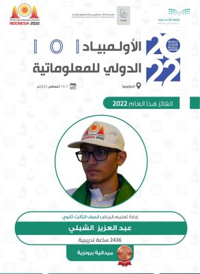 حصدت المملكة العربية السعودية ، الميدالية البرونزية في أولمبياد المعلوماتية الدولي 2022 في نسخته الـ 34، التي استضافتها دولة إندونيسيا في الفترة من 7 إلى 15 أغسطس الجاري 2022م.