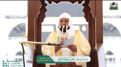 أوصى إمام وخطيب المسجد الحرام ، الدكتور ماهر حمد المعيقلي المسلمين، في خطبة اليوم الجمعة 1444/01/21بالمسجد الحرام بتقوى الله في السر والعلن وفي الخلوة والجلوة فهي وصية للأولين والآخرين.