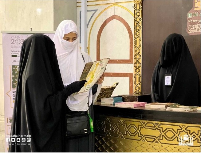 قامت وكالة الشؤون النسائية بالرئاسة العامة لشؤون المسجد الحرام والمسجد النبوي، بتوزيع دليل الإرشاد المكاني على قاصدات بيت الله الحرام بعدة لغات عالمية.