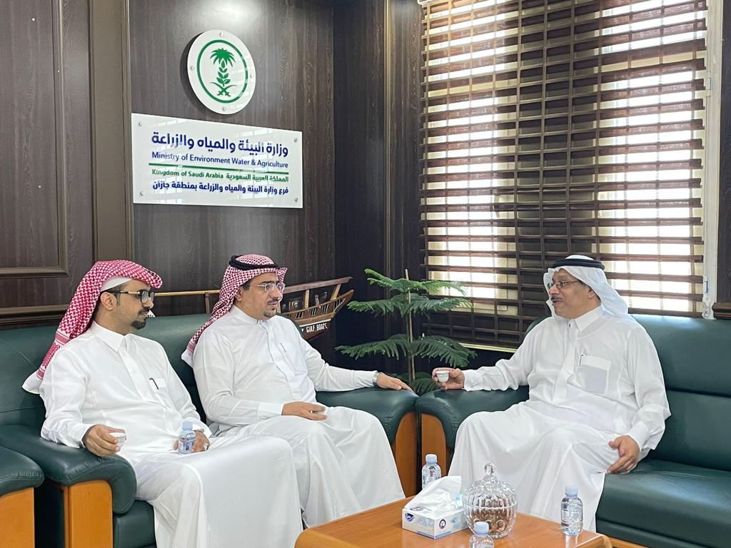 أستقبل مدير عام فرع وزاره البيئه والمياه والزراعه بمنطقه جازان المهندس / محمد بن علي آل عطيف في مكتبه نائب الرئيس التنفيذي لشركة أرامكو السعوديه معالي المهندس / خالد خليفه الملحم والوفد المرافق معه مدير الشئون الحكوميه بالمنطقه الغربيه لأرامكو السعوديه المهندس / عبدالعزيز الشعلان ونائب مدير الشئون الحكوميه بالمنطقه الغربيه لأرامكو السعوديه المهندس / يحيي سعيد الزهراني وقوبل الملحم بترحيب آل عطيف لزيارته للمنطقه وللفرع واستهل آل عطيف بالتعاون القائم والمستمر بين وزارة البيئة والمياه والزراعة وشركه أرامكو السعوديه ودار النقاش عن مبادرة شركة ارامكو لاقامة حديقه بيئيه بقوز الجعافرة والذي تبلغ مساحتها ٢٠٠٠،٠٠٠ م٢..وهذا المشروع الذي يعد الاول من نوعه بيئا وسياحياً ..
