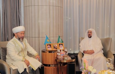 كما عبر سماحة مفتي جمهورية كازخستان“ عن سعادته بلقاء الوزير ” آل الشيخ ” والاستفادة من توجيهاته ونصائحه لخدمة المسلمين بالجمهورية والتي وصفها بالجميلة والتي توافقها الأفتاء تماماً ، مؤكدًا حرص بلاده على الاستفادة من تجربة المملكة ممثلة بوزارة الشؤون الإسلامية في خدمة الإسلام ونشر الوسطية والاعتدال والتسامح والتصدي للتطرف والكراهية.