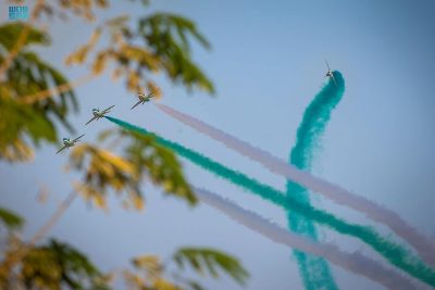 وتنفّذ القوات الجوية الملكية السعودية على مدى عشرة أيام عروضًا جوية بطائرات “تايفون”، و “ف – 15 إس”، و “تورنيدو”، و “ف – 15 سي” في 14 مدينة.