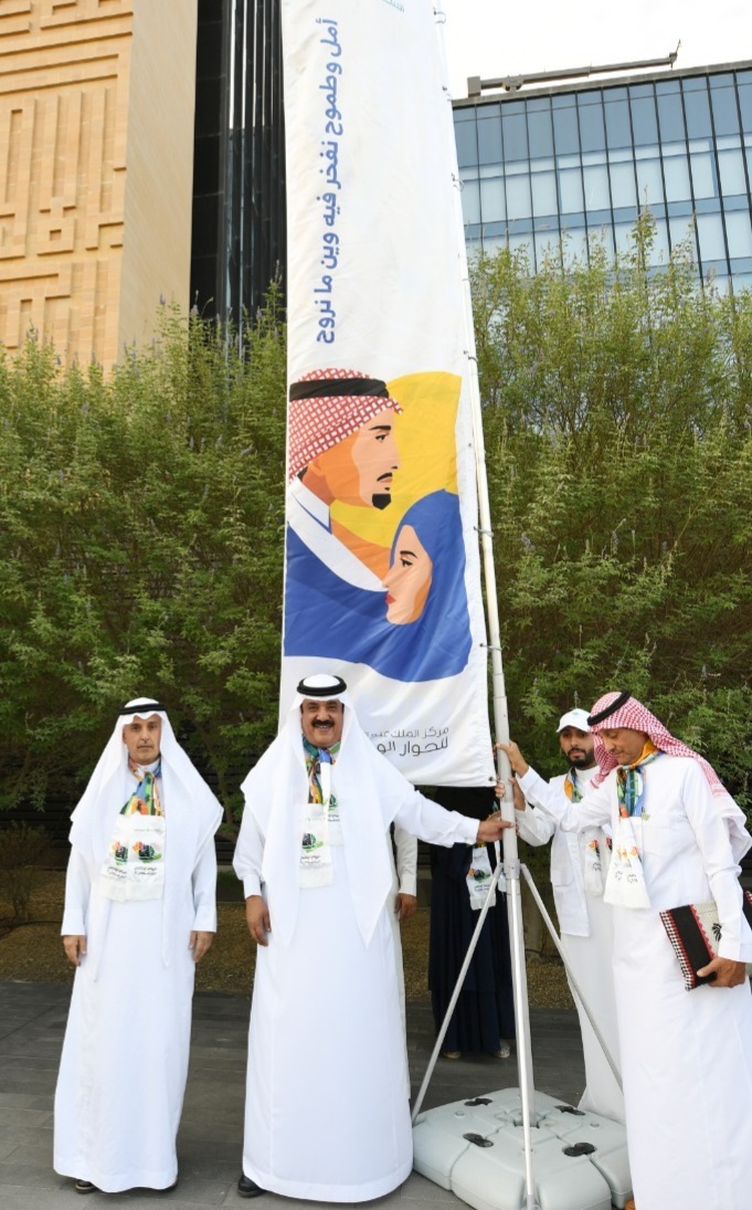 من جهة أخرى، وضمن مشاركة المركز بالاحتفال باليوم الوطني توشح مبنى مركز الملك عبدالعزيز للحوار الوطني الرئيسي بعلم المملكة واكتسى باللون الأخضر (لون العلم السعودي)، احتفالا باليوم الوطني السعودي الثاني والتسعين.