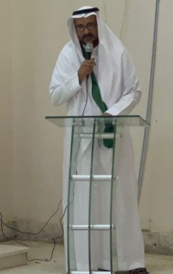 تلا ذلك كلمة مدير المدرسة الأستاذ عبد الكريم محمد الشريفي رفع من خلالها أسمى آيات التهاني والتبريكات لمقام خادم الحرمين الشريفين الملك سلمان بن عبد العزيز ولصاحب السمو الملكي الأمير محمد بن سلمان بن عبد العزيز ولي العهد رئيس مجلس الوزراء ولصاحب السمو الملكي الأمير الدكتور حسام بن سعود بن عبد العزيز أمير منطقة الباحة بذكرى اليوم الوطني الثاني والتسعين لتوحيد المملكة العربية السعودية على يدي الملك المؤسس عبد العزيز بن عبد الرحمن مؤكداً أن هذا اليوم نستذكر فيه جميعا تلك البطولات التي حققها الملك عبد العزيز – طيب الله ثراه – حتى وحد هذه الدولة العظيمة على راية التوحيد وسار على نهجه أبناؤه البررة حتى عهدنا الزاهر عهد خادم الحرمين الشريفين الملك سلمان بن عبد العزيز وسمو ولي عهده الأمين